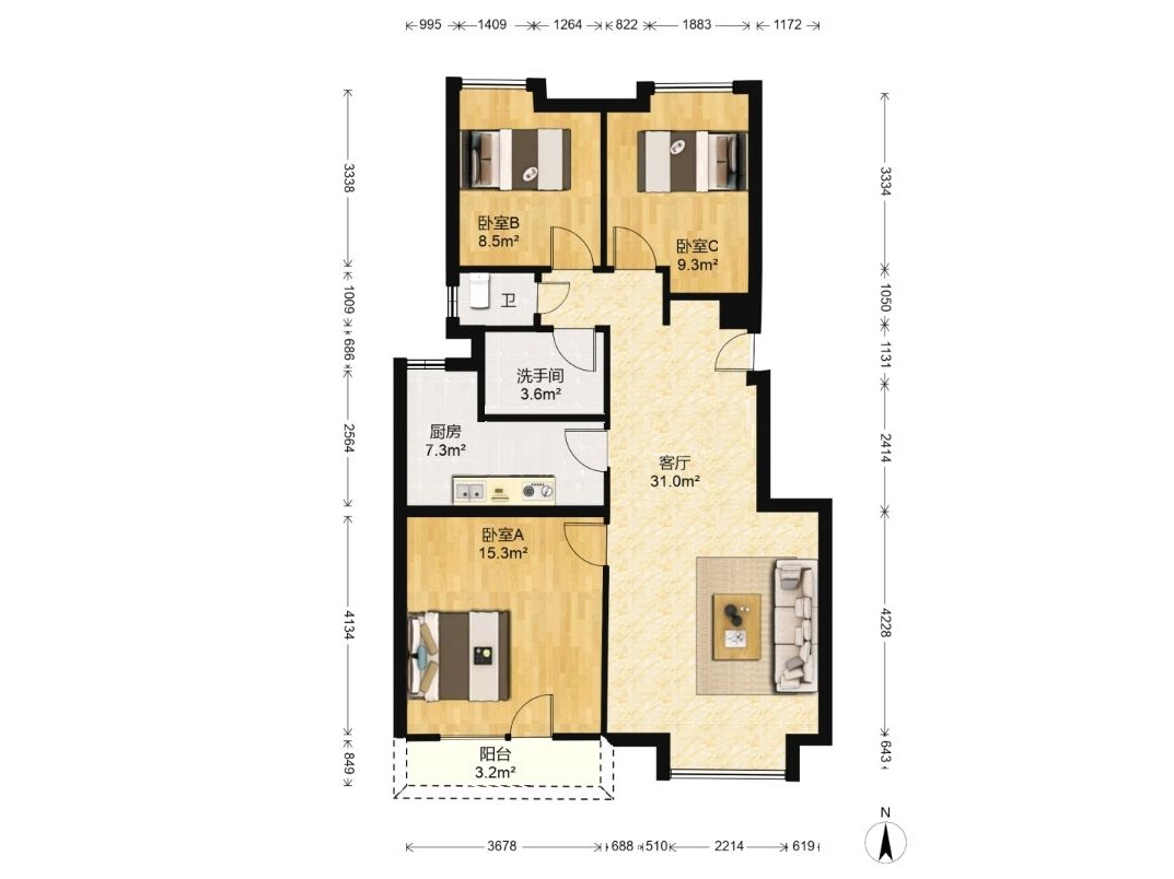 本房是首创澜茵山的三居室,户型方正,业主诚意出售,进门餐客一体,北侧两间卧室,卫生间干湿分离,厨房干净整洁,朝南卧室带阳台(已封好)。喜欢的别错过,看房提前联系
